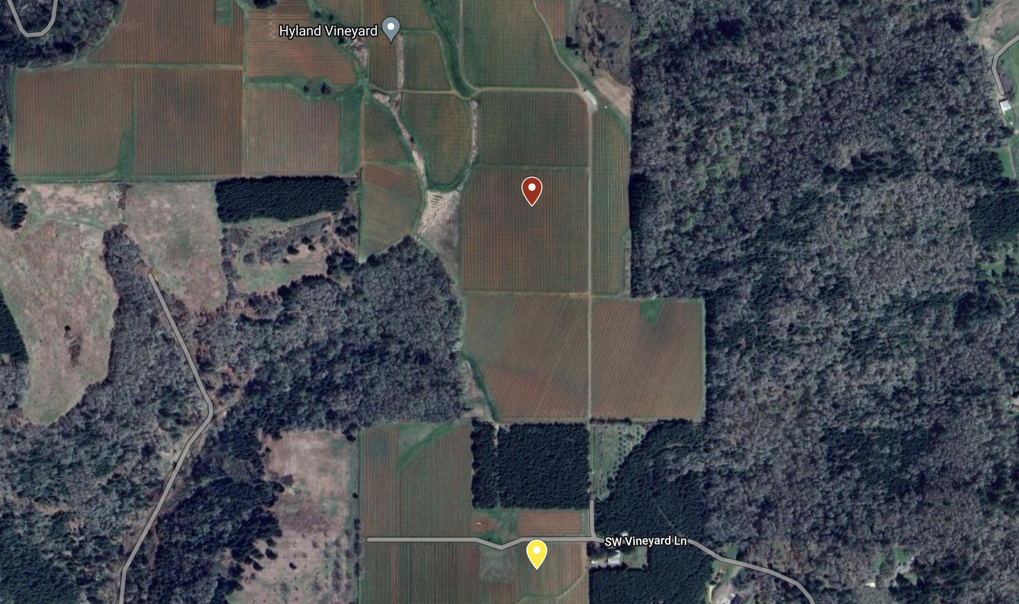 Located just minutes from Martin Woods Winery—Hyland Vineyard spans over 200 acres, with approximately 185 acres under vine, making it one of Oregon's most historic and expansive vineyards. Hyland is situated on the northern shoulder of the Van Duzer gap, the "air-conditioning" pathway through the Coast Range where marine air enters from the ocean and cools the Willamette Valley. Persistent wind spills over this neighborhood, moderating temperatures and allowing for patient ripening and retention of fresh acidity. The vines at Hyland thrive in volcanic Jory soil