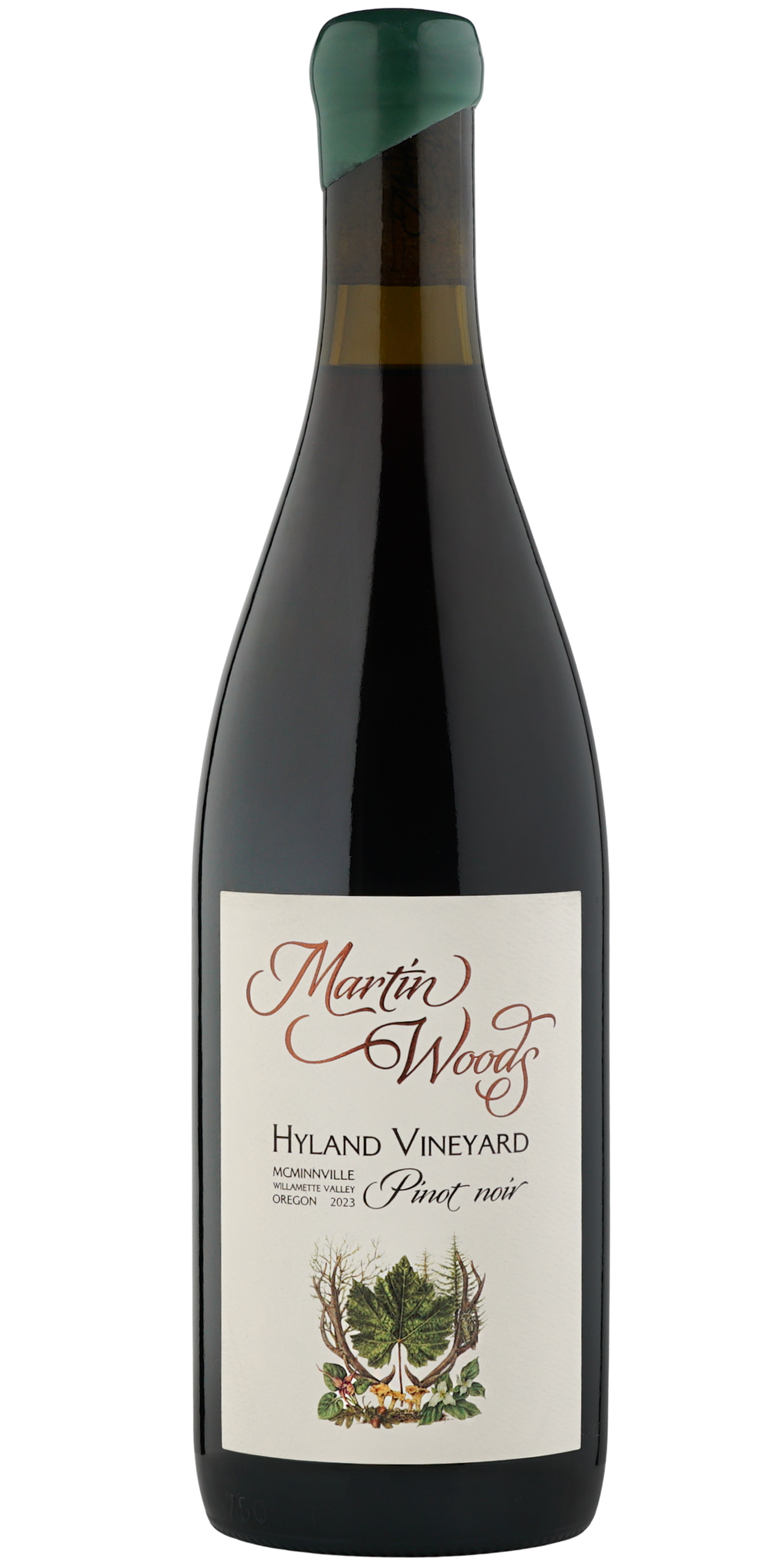 97 - International Wine Report: "The 2023 Martin Woods Hyland Vineyard Pinot Noir from McMinnville is drawn from own-rooted vines set in volcanic soils, delivering a wine that marries purity with depth. The bouquet is captivating, filled with crushed strawberry, rose petal, raspberry coulis, and hints of dried thyme, all carried by a subtle reductive edge. On the palate, it glides with ease, revealing layers of red cherry, blood orange zest, and savory tea leaf, all wrapped in supple tannins. A lifted floral quality weaves throughout, recalling lavender and violets, which add finesse to its expressive core. The structure is polished yet firm enough to carry the wine across decades, while the mineral undertone anchors its elegance. Each sip reveals both delicacy and quiet power. This Pinot Noir would pair beautifully with a wild mushroom risotto finished with Parmesan and fresh thyme, the creamy texture and earthy flavors matching the wine’s savory depth and floral lift. Highly recommended.."
