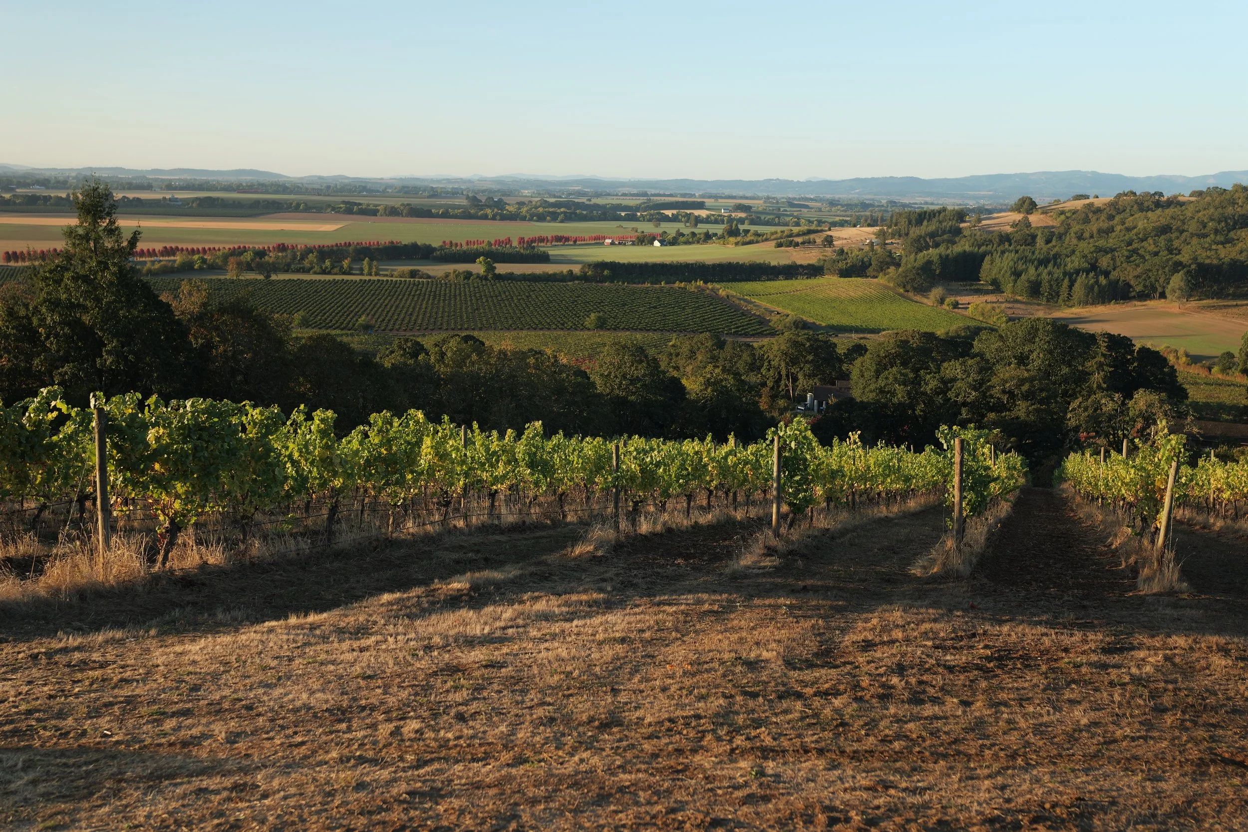Yamhill Valley Vineyard is positioned within the McMinnville ava in the foothills of the Coast Range, along the edge of the Van Duzer Corridor—the "air-conditioning" pathway through the Coast Range where cool marine air pours in from the ocean 30 miles away. The cooling winds and cool mountain air translate to Chardonnay with refreshing, intense qualities. The shallow volcanic soils and steep, south-facing slope of the Fromage and Hilltop blocks have little water-holding capacity, causing stress to the vines and resulting in sparse canopies and loose clusters of unusually small, sun-kissed, thick-skinned chardonnay berries, giving tremendous depth and texture to the wine. Our goal for Chardonnay is to achieve a tension between expressive fruit, vibrant acidity, and subtle yet complex aromas. This exceptional block of vines offers a balance of depth, breadth, and focus that amazes us every year.
